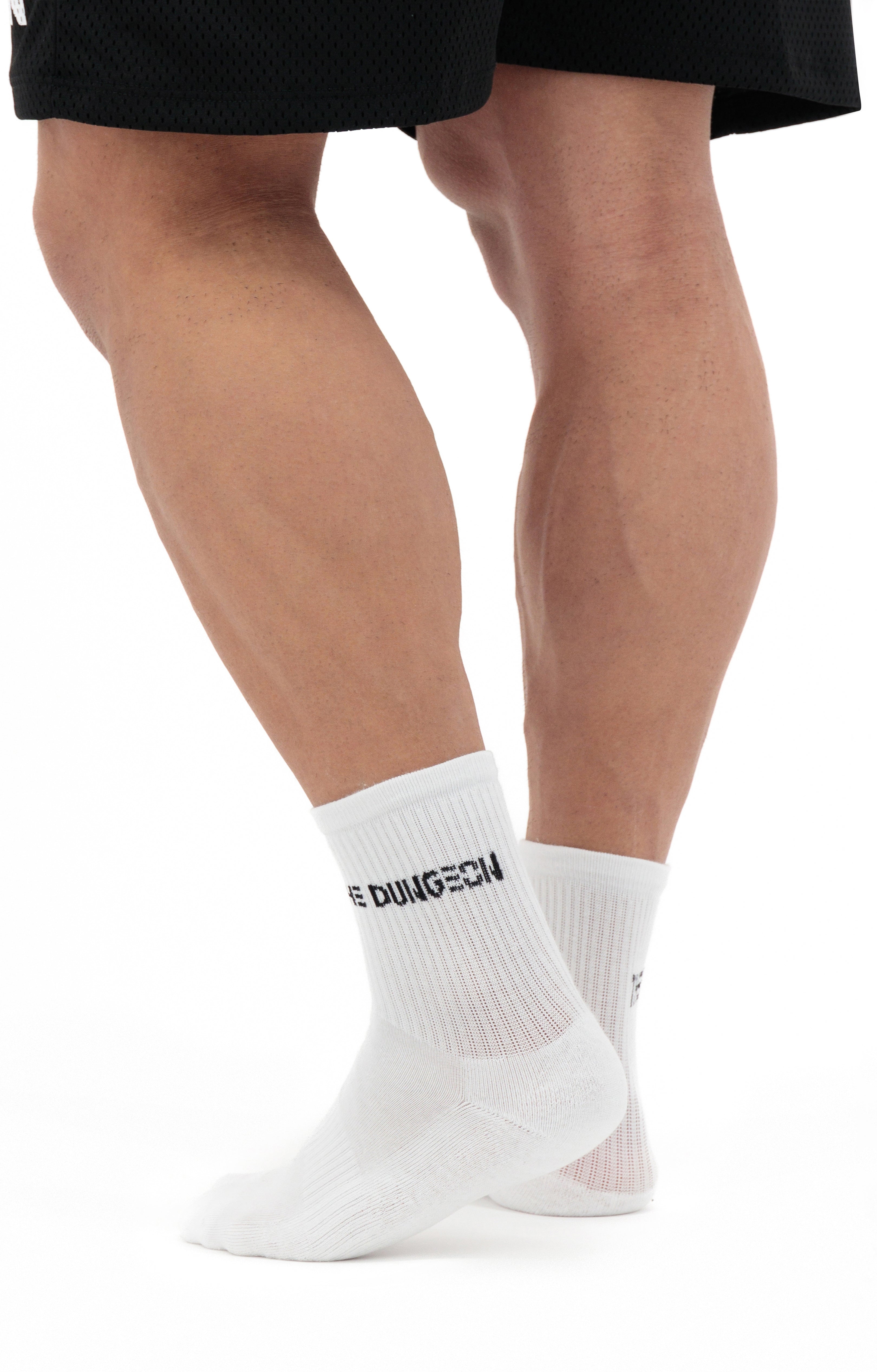 جورب مقاس طويل لون كركي اوأبيض مع خياطة لشعار دنجن.