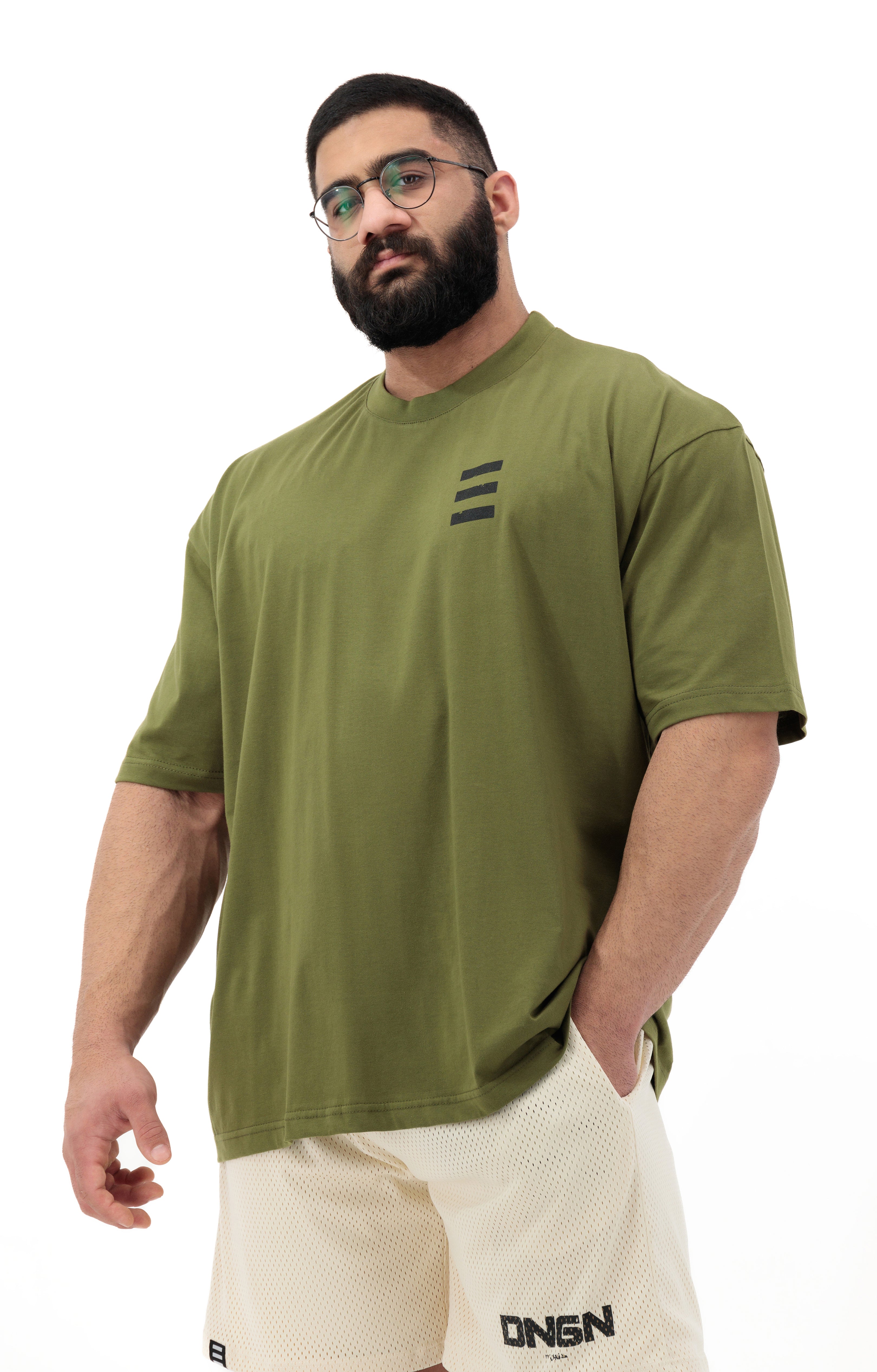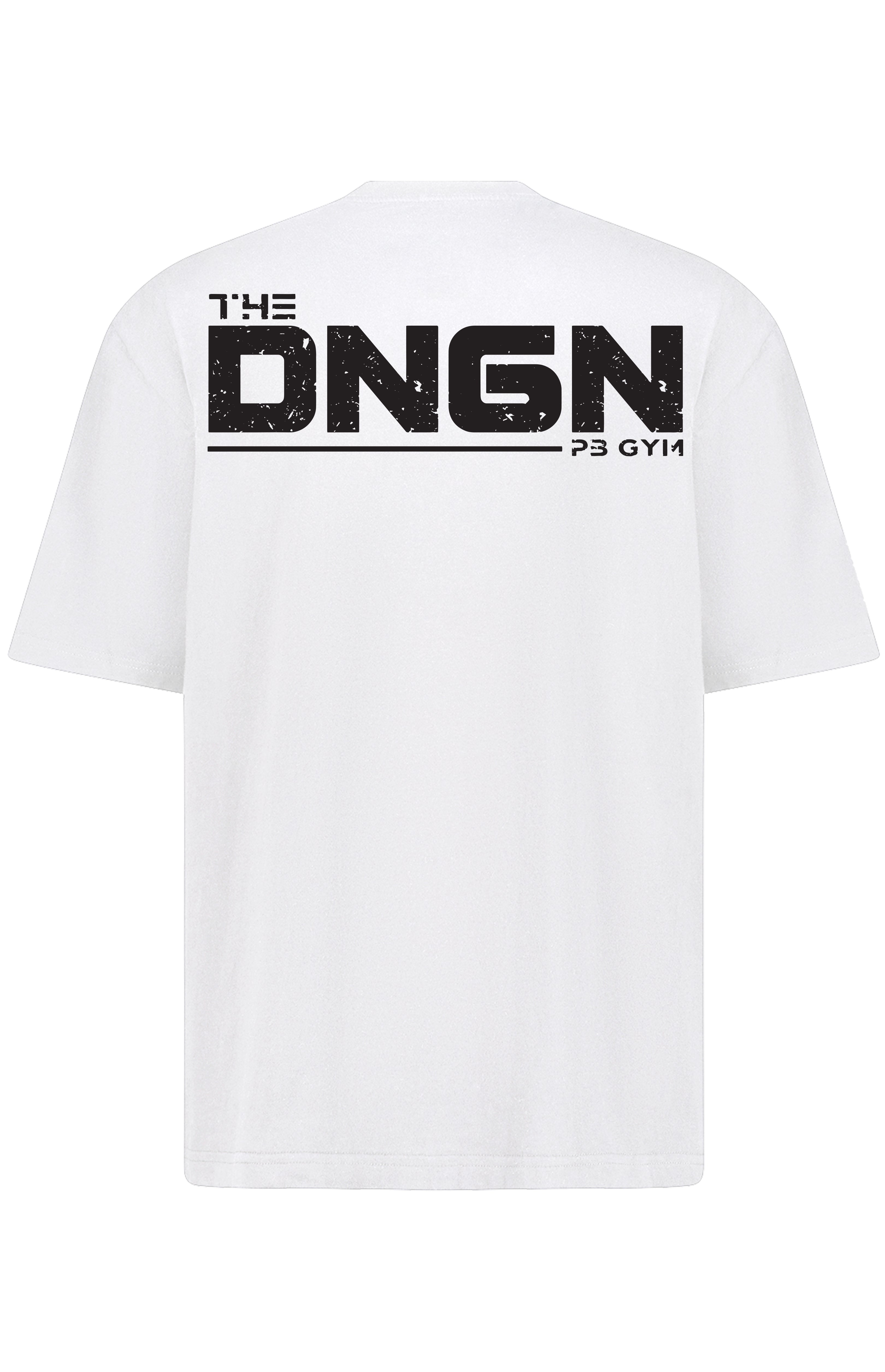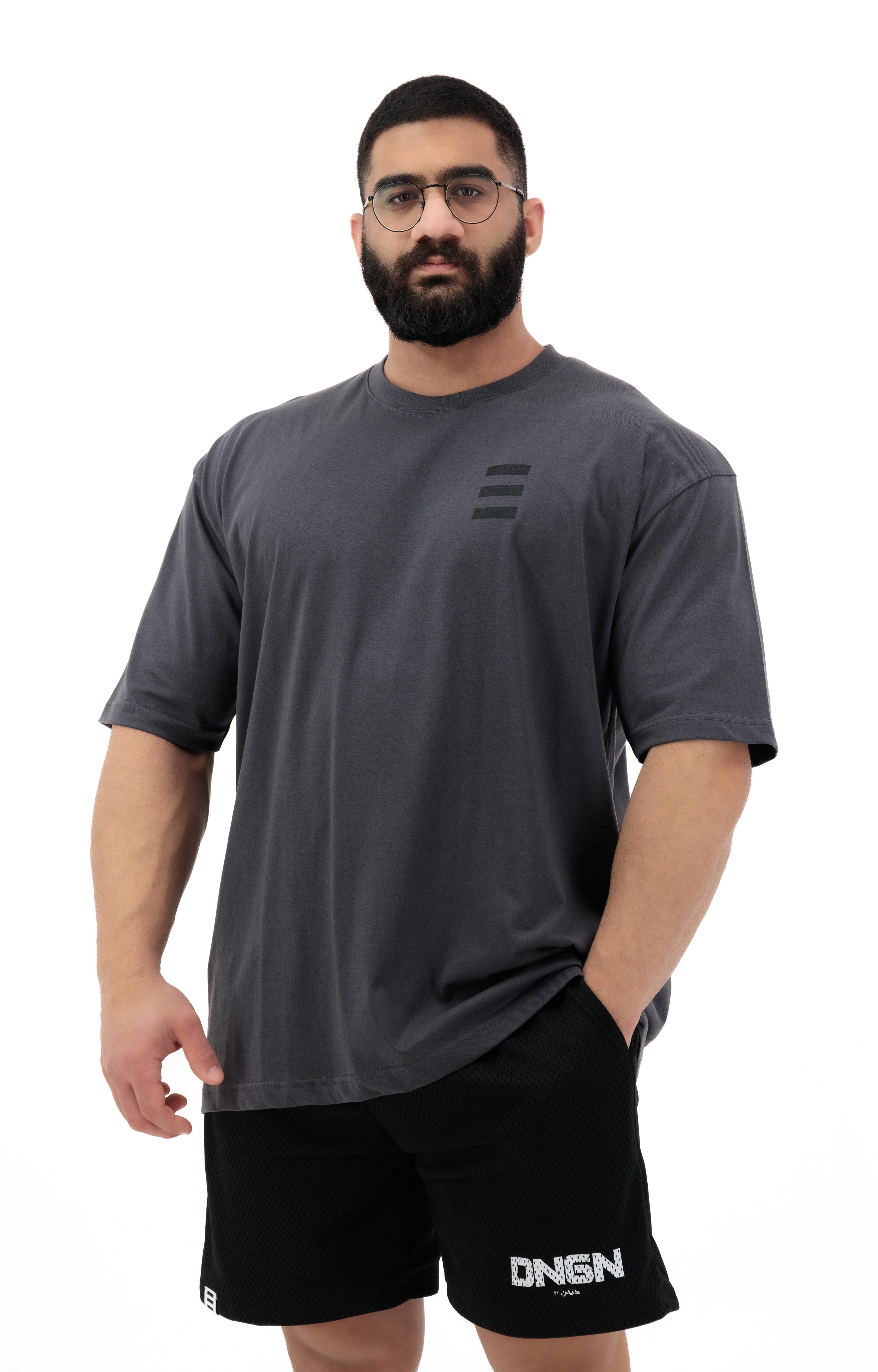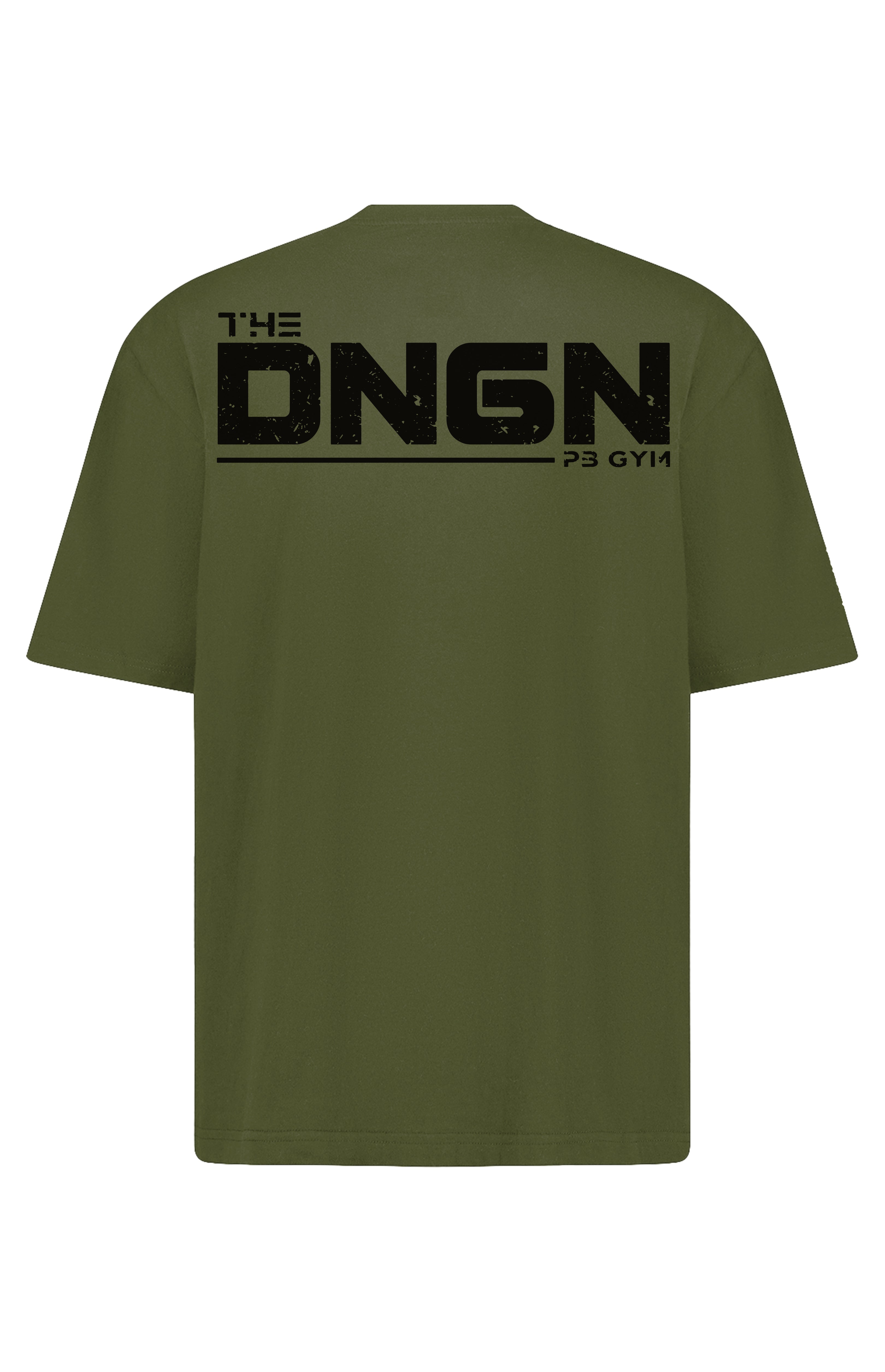 تي شيرت دنجن اوفر سايز كبير الحجم باللونين الأسود والبني مع رسم مطبوع لشعار الدنجن