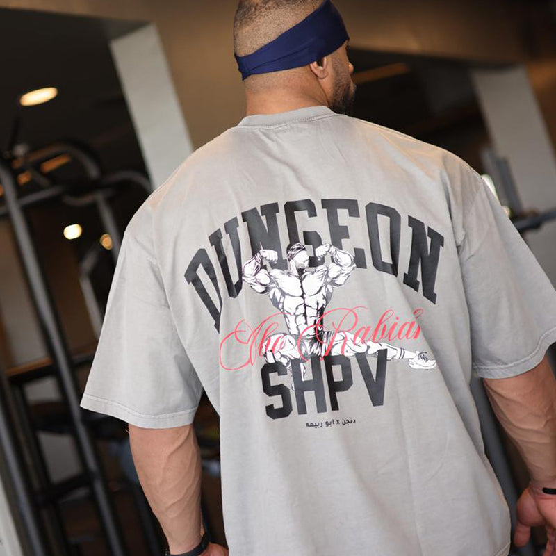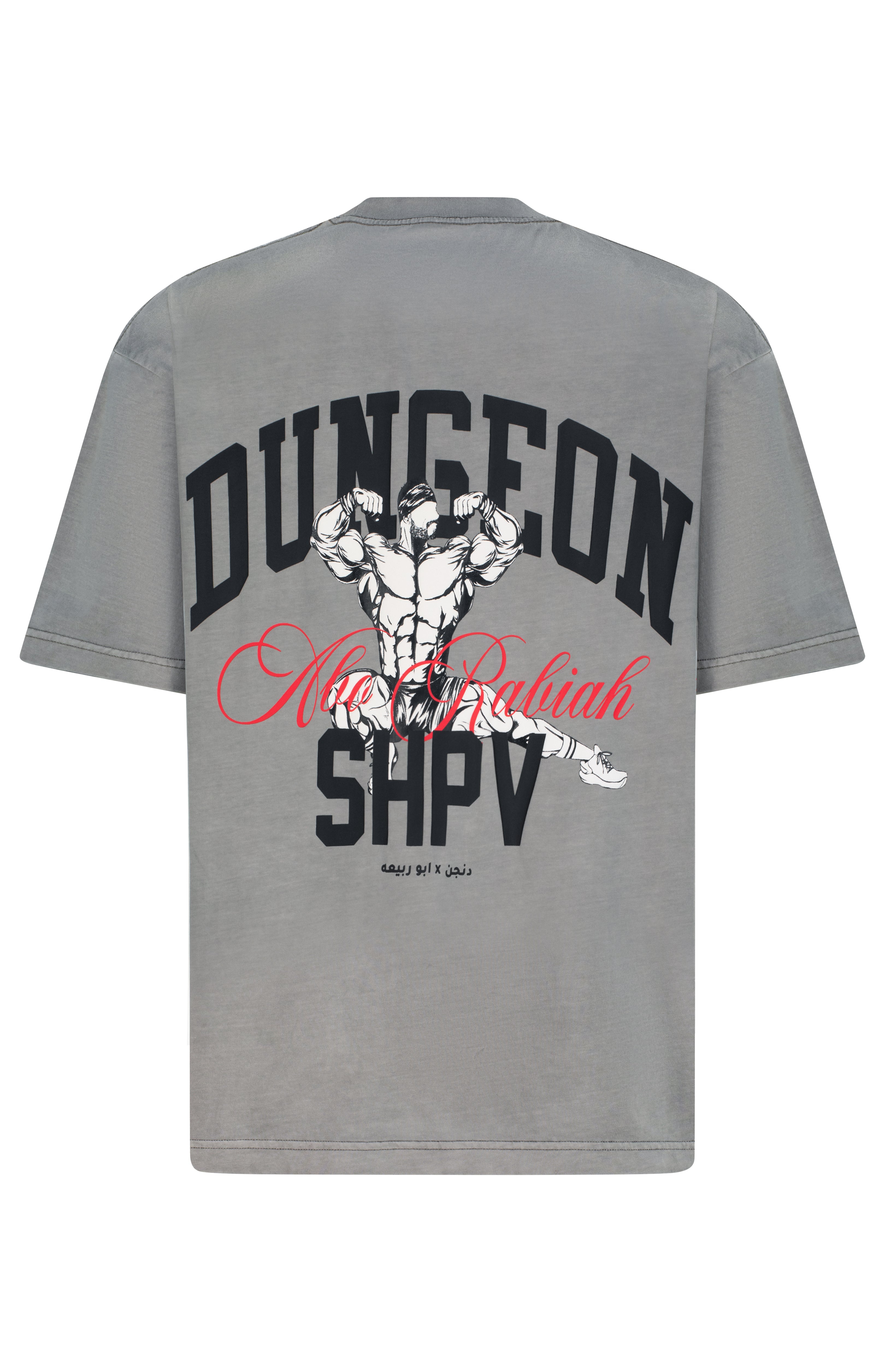 Introducing the ABO RABIAH X DUNGEON, a special collaboration with renowned bodybuilder IFBB PRO ABO RABIAH. This limited-edition acid washed t-shirt is designed to inspire greatness, blending premium-quality fabric with a fit that supports both performance and comfort. The exclusive design reflects Abo Rabiah's iconic style, making it a statement piece for gym sessions or casual wear.