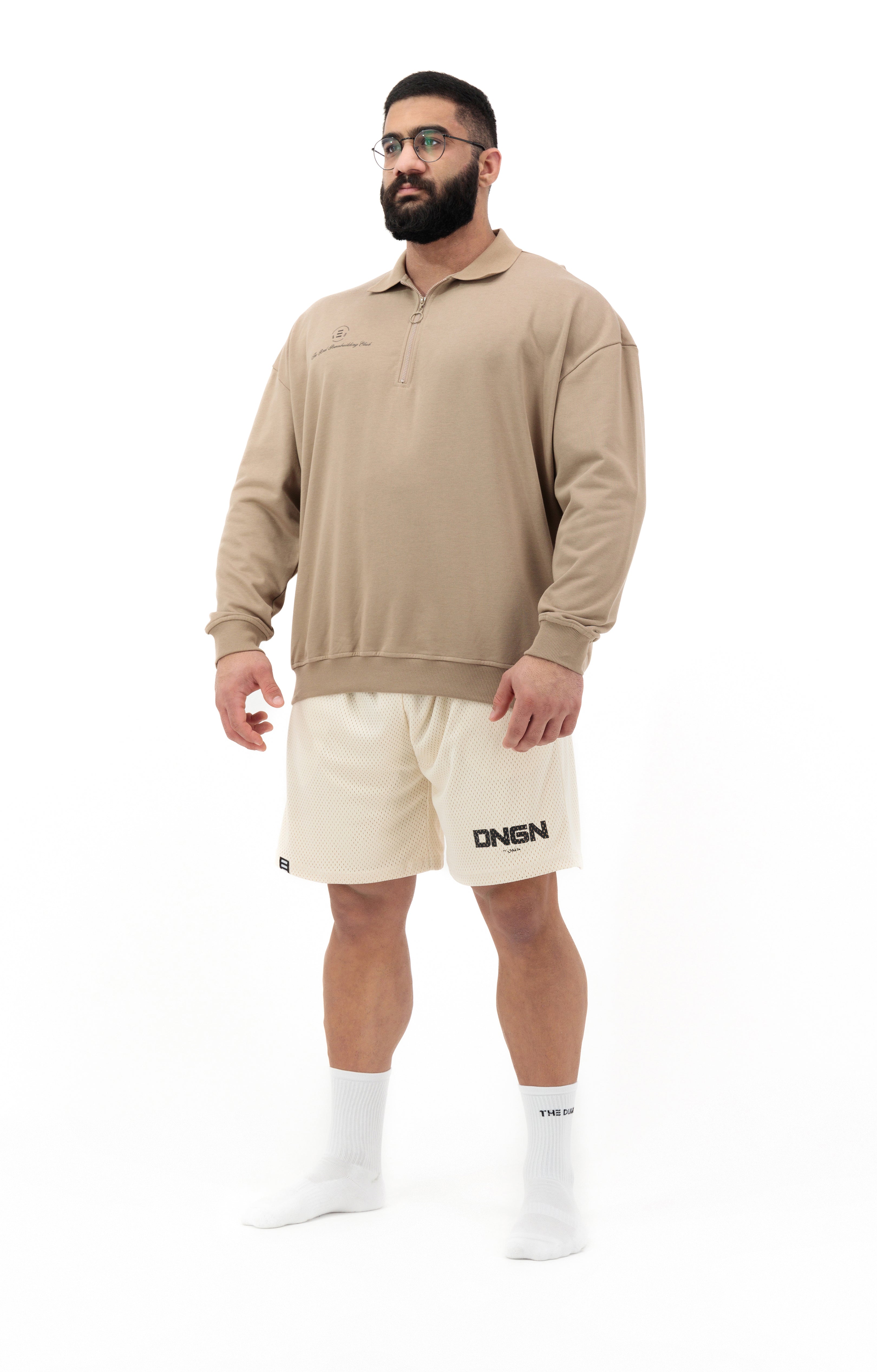 Upgrade your gymwear with HALF ZIPPER OVERSIZED SWEATSHIRT. Featuring a sleek half-zip and our signature logo, this piece offers style, comfort, and durability—ideal for workouts or everyday wear. Perfect for layering, it combines functionality with a premium look that keeps you fresh and ready for anything.